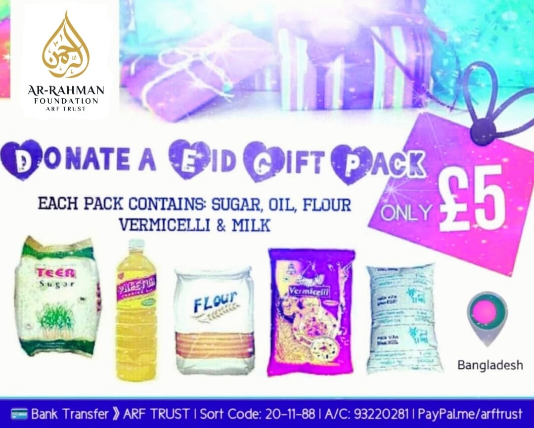Ar-Rahman Foundation will be distributing Eid Gift Packs to the poorest families in Bangladesh before the Eidul-Fitr celebrations commence at the completion of fasting in the blessed month of Ramadan.