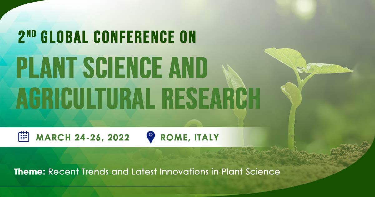 Iris Scientific Group takes immense pleasure in inviting all the research scientists, professionals, Eminent Researchers to the 2nd Global Conference on Plant Science and Agricultural Research (GPAR 2022) during March 24-26, 2022 at Rome, Italy with the theme of “Recent Trends and Latest Innovations in Plant Science” featured.