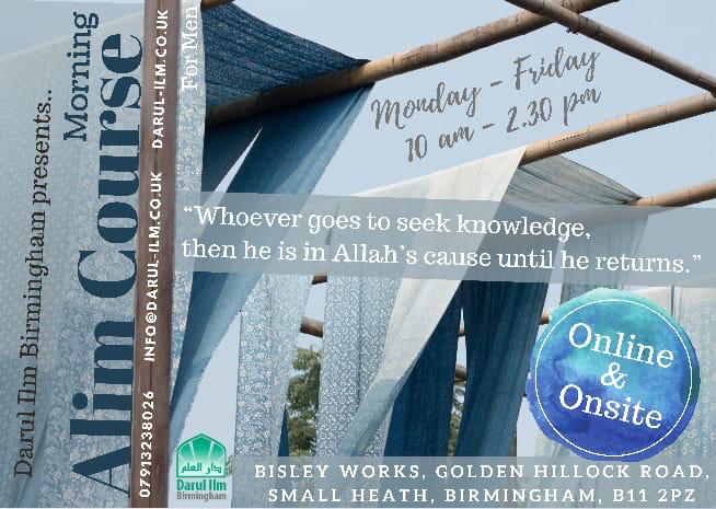 Darul Ilm Birmingham invites you to join it's Alim Course to better understand why you are here on this Earth and how to make the most of the limited time you have here.