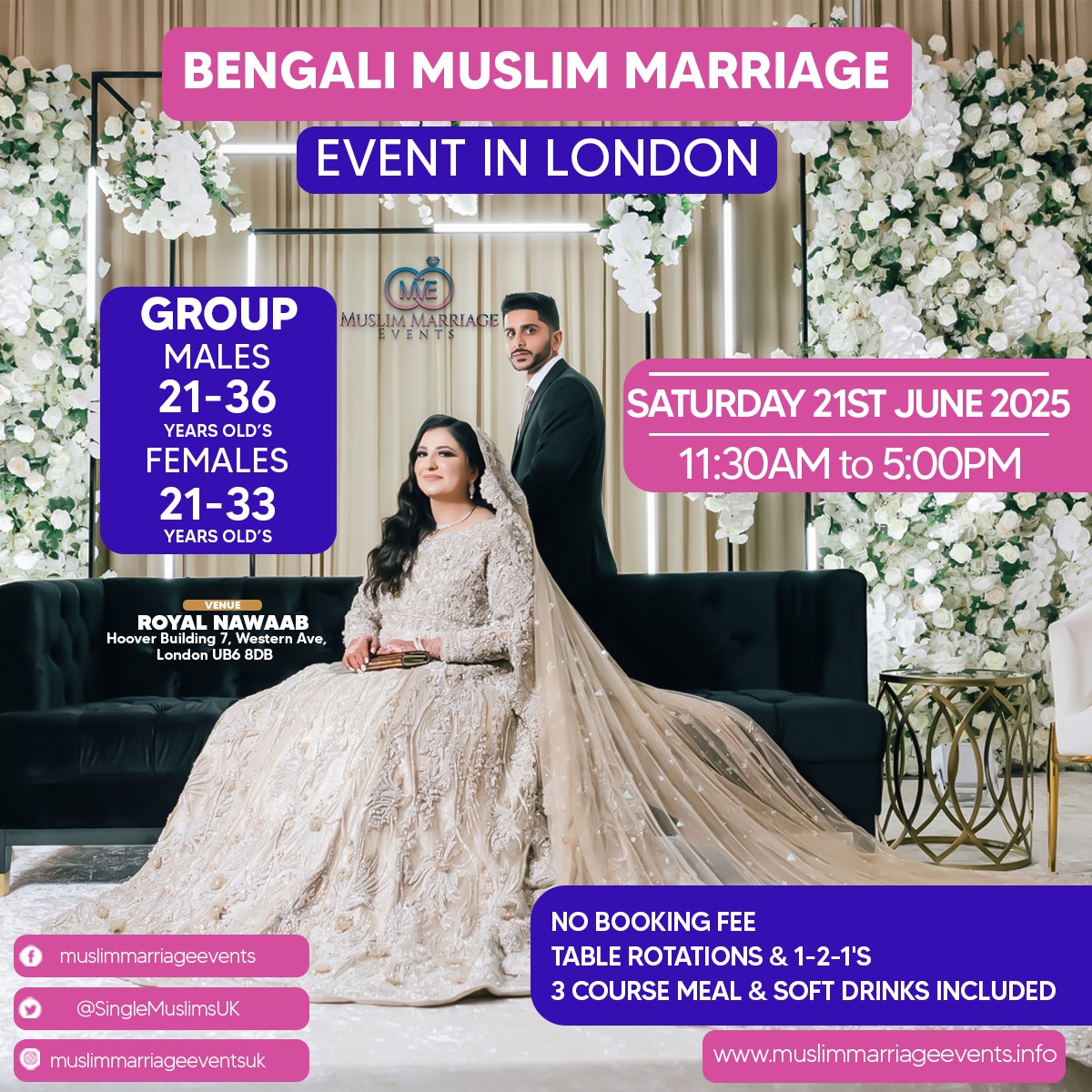 We are holding the next bengali muslim marriage event on Saturday 21st June 2025 at Royal Nawaab, Old Hoover Building, Perivale, Greenford, UB6 6DB.