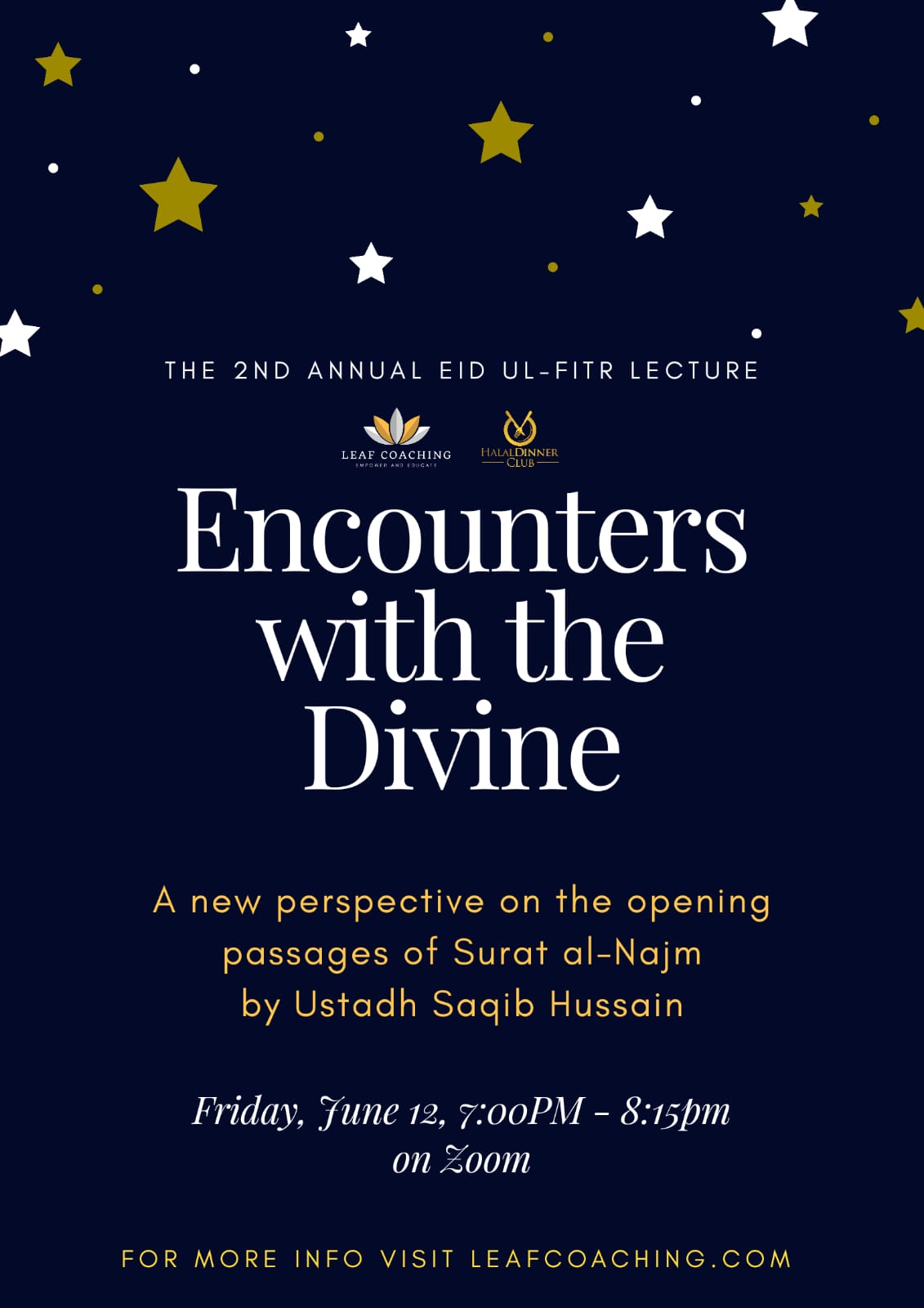 We are extremely lucky to have Ustadh Saqib Hussain talk about 'Encounters with the Divine', based on his award-winning paper on Surat al-Najm.