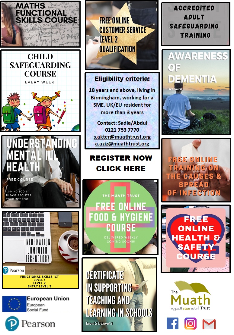 Courses Run Mondays to Thursdays - Email s.akter@muathtrust.org for more information or call 0121 753 7770