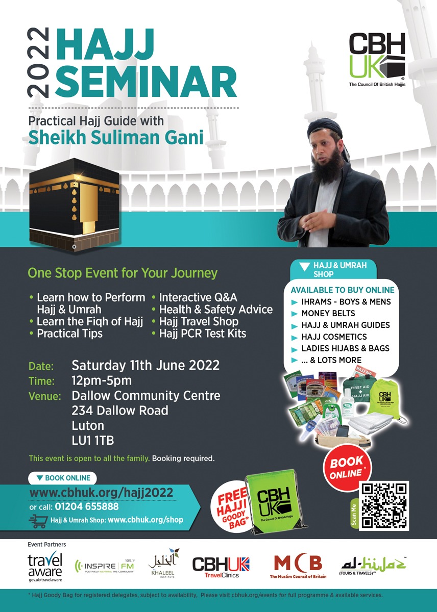 Pre-Order your Hajj & Umrah Travel Essentials at www.cbhuk.org/shop (Order before 31.05.2022 and get 10% Off your order* - Applies to Online orders only) Use Code: hajj10