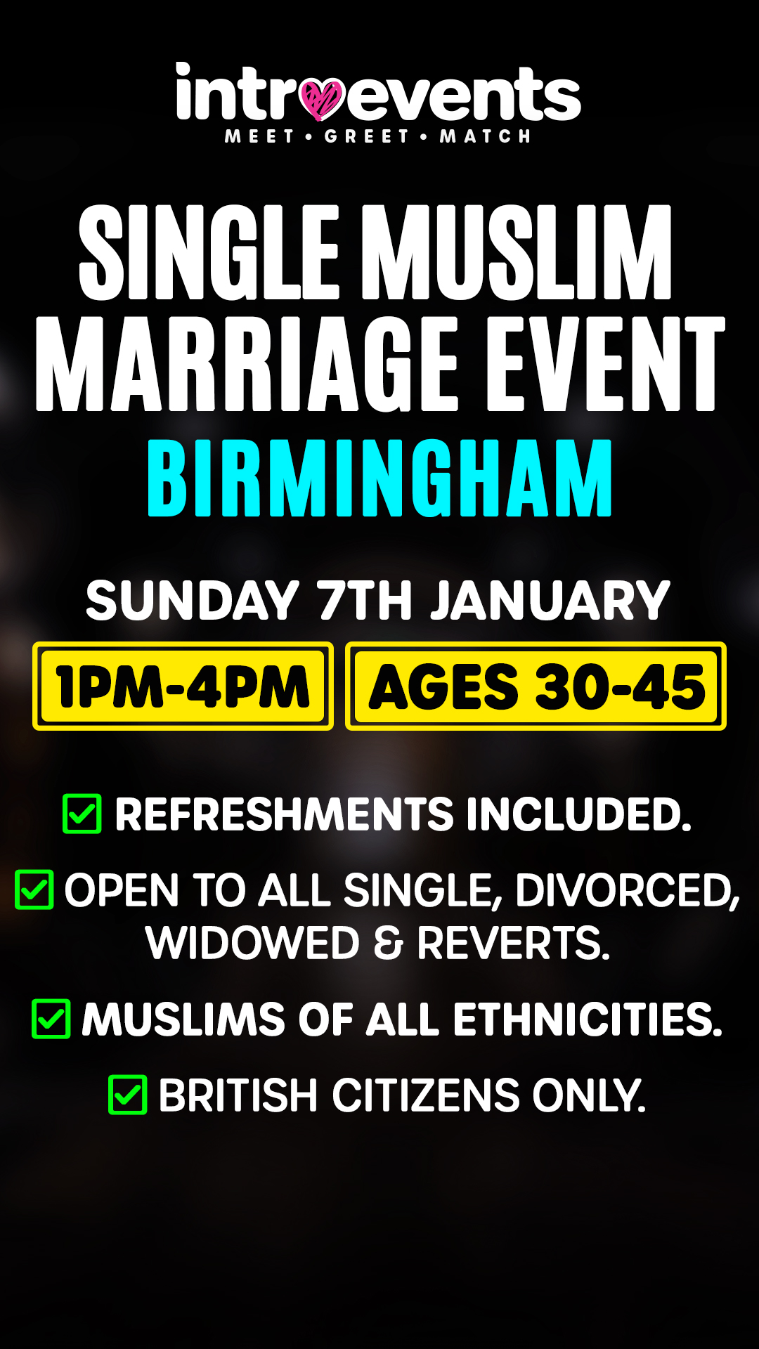 Muslim Marriage Events Birmingham for Single Muslims Aged 30-45. Sun January 7 at 1PM.