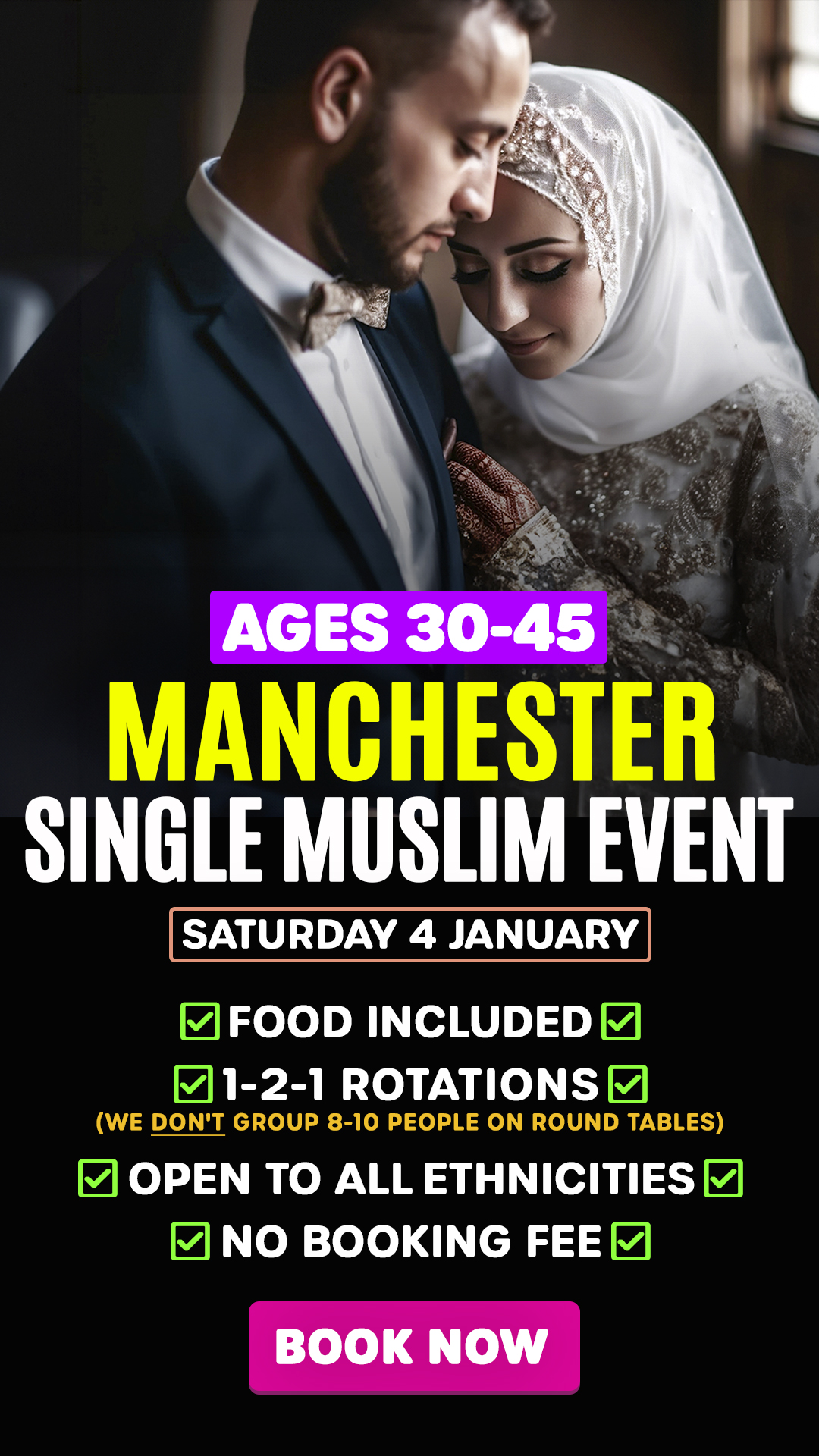 TICKET LINK: https://www.eventbrite.co.uk/e/muslim-marriage-events-manchester-for-ages-30-45-open-to-all-muslims-tickets-1097265463539