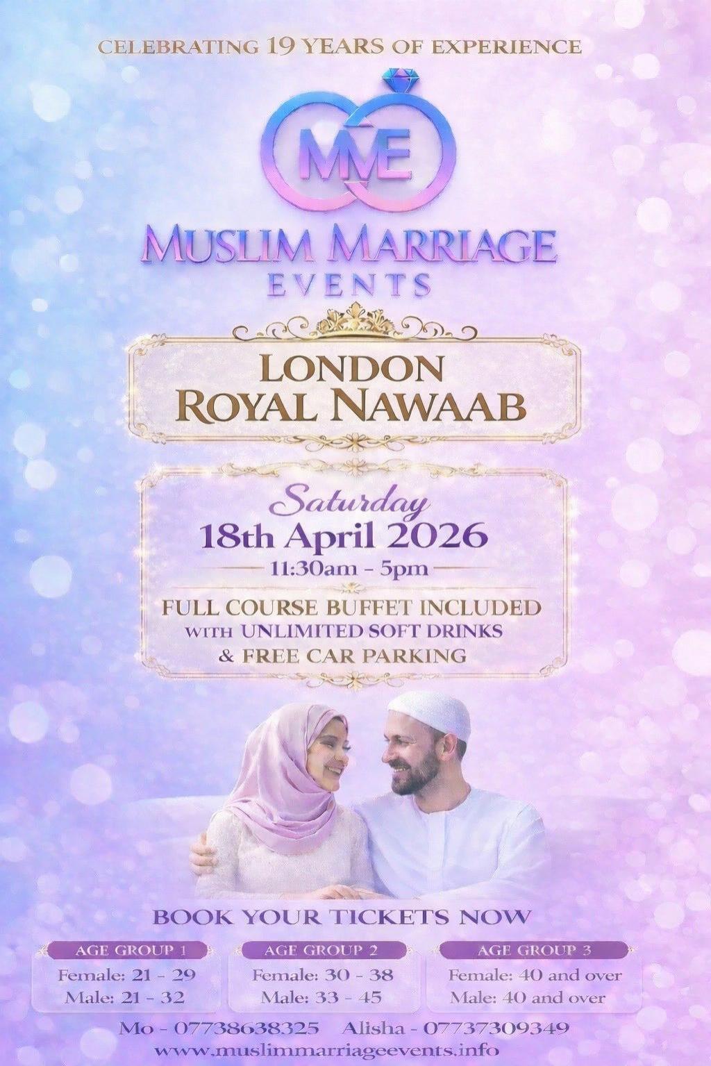 For more info please call Alisha on 07737309349 or Mo on 07738638325 or visit https://muslimmarriageevents.info/event/london/