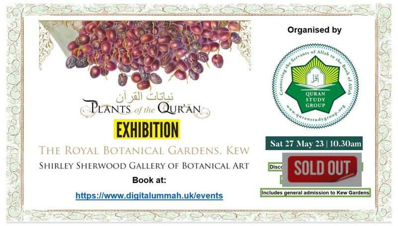 Quran Study Group is pleased to organised this special day trip to Kew Gardens to view the PLANTS OF THE QURAN Exhibition. The ticket price includes general admission to Kew Gardens as well. The visit is arranged in the weekend before the late May bank holiday and half term to facilitate visit for families.