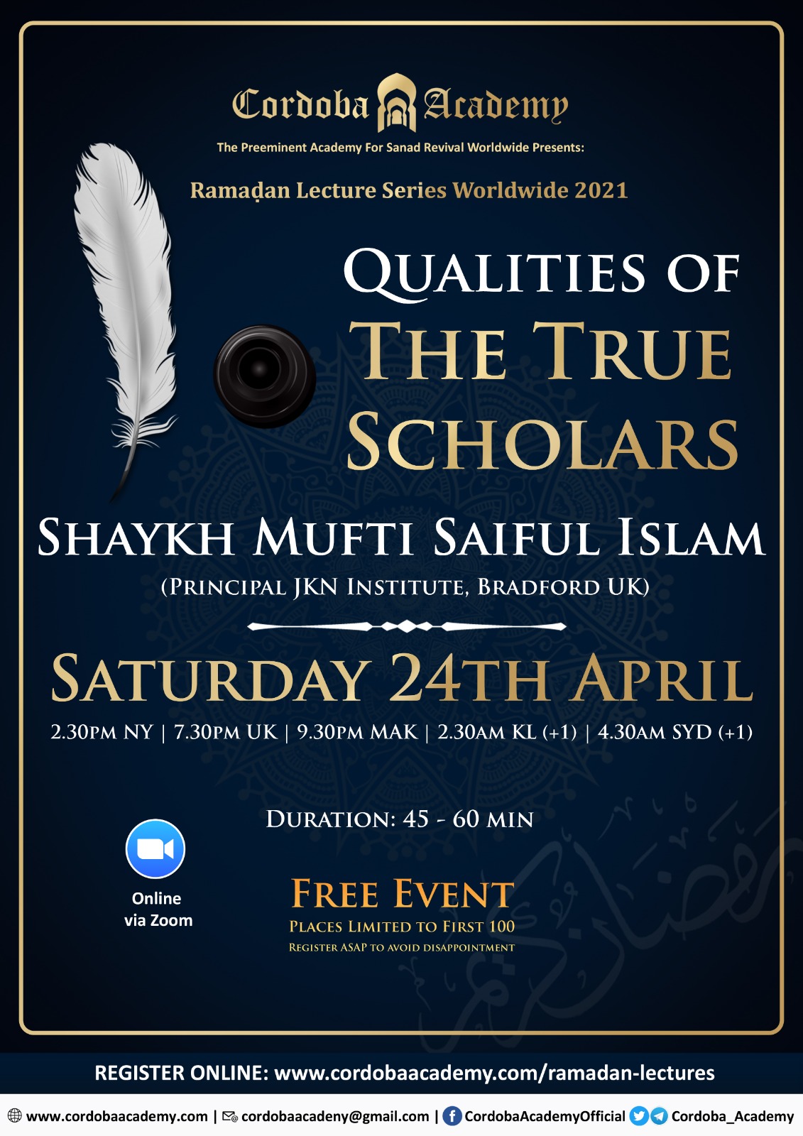 Speaker: Shaykh Mufti Saiful Islam (Principal, JKN Institute, Bradford UK)