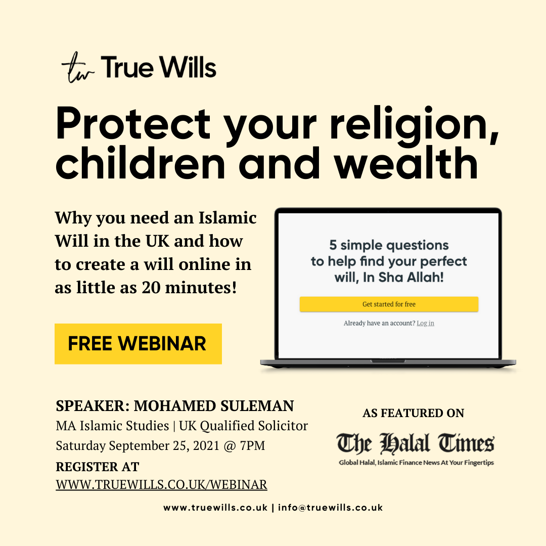 REGISTER : https://truewills.co.uk/webinar/why-you-need-an-islamic-will-in-the-uk/