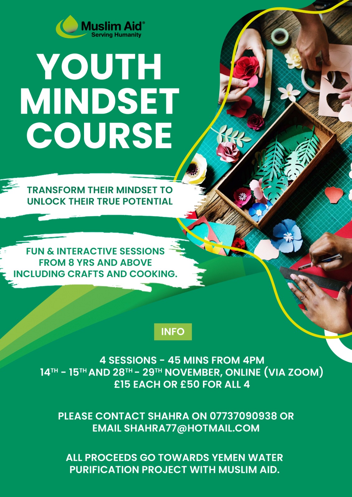 All proceeds are in aid of The Yemen water purification project funded by Muslim aid.